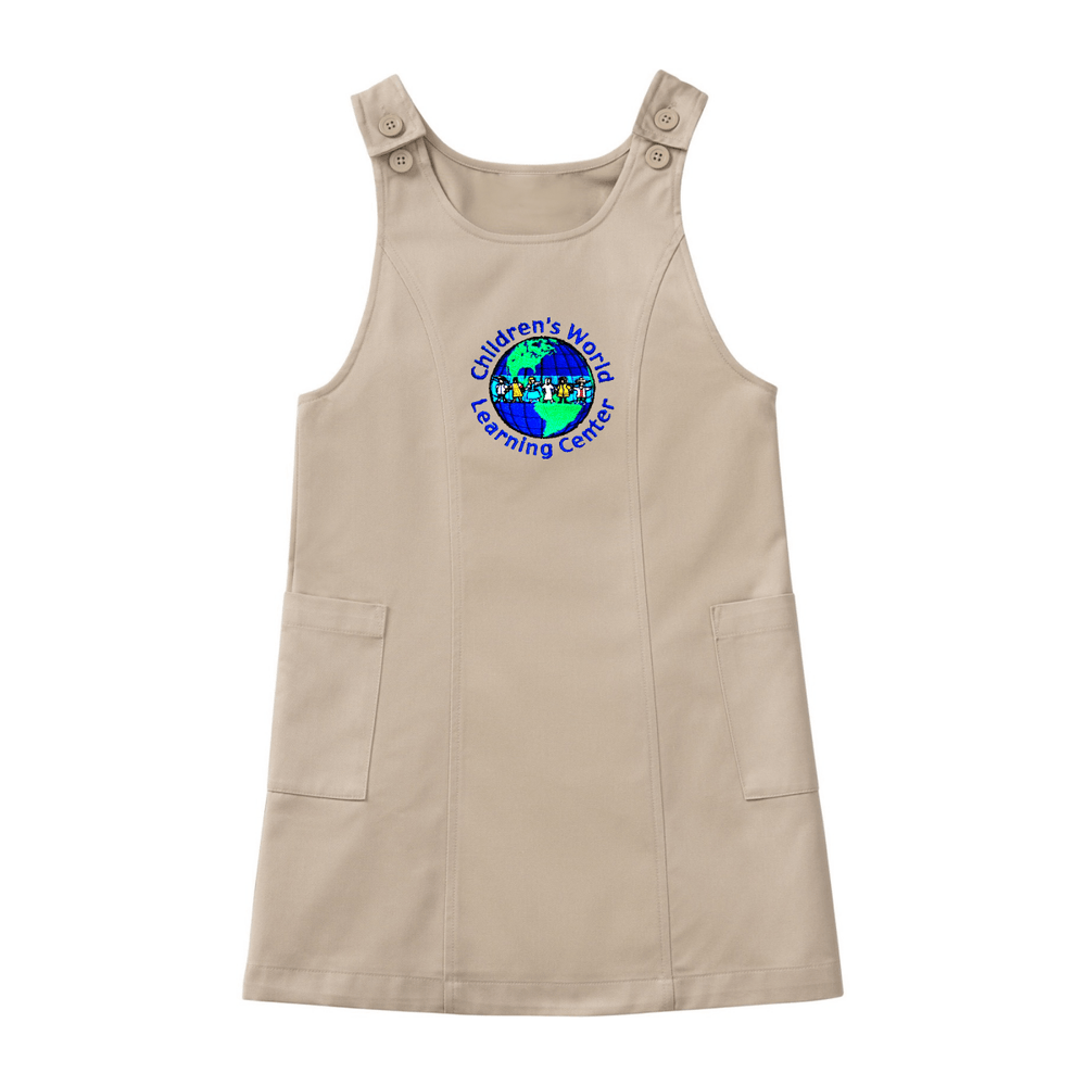 The Children's World Girls Khaki Jumper is a classic school uniform essential designed for comfort and neat appearance. This khaki jumper features a pleated front and a convenient zipper closure for easy dressing. Ideal for layering over blouses or polos, it meets the official uniform requirements for Children’s World students.