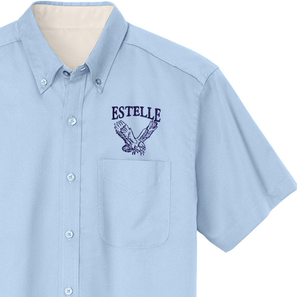 Polished and professional, the Estelle 6th–8th Light Blue Oxford Shirt is an optional uniform piece for upper-grade students. Featuring a classic button-down collar, front chest pocket, and short sleeves, it offers a clean, structured look perfect for the classroom.